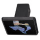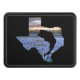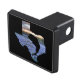 Pesca de mosca en Texas Hill Country. Forma del estado de Texas con bellas redes azules en el fondo. Texto de "Hill Country" y grandes bajos de la boca saltando después del señuelo de la pesca con mosca.
