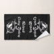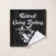 ¡Retirado! Pescando. Texto blanco con un pez blanco a punto de morder el anzuelo en un gancho, sobre un fondo negro.