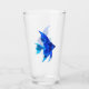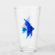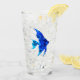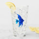 un diseño decorativo de pequeños peces azules en un vaso de agua. diseño fresco para los propietarios de acuarios y los aficionados a los océanos.