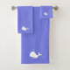 Elegante pez ballena blanco sobre el conjunto azul claro de toallas de baño.