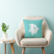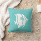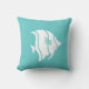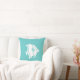 parte del decorador temático del océano pescado blanco sobre almohada azul turquesa por un lado y raya turquesa y blanca en la parte posterior.