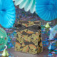 Una caja de carpas de moda, con un patrón de motivos tradicionales egipcios, pescados y cocodrilos, en un fondo rojo rusto. Este patrón, que forma parte de la colección "egipcia" de Posh y Painterly, se puede ajustar fácilmente para que se ajuste a cualquier caja de favores.