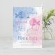 ¿Él o ella? ¿Qué será el bebé? Celebra la gran revelación con nuestra encantadora invitación a revelar sexo, perfecta para reunir a los seres queridos para compartir la emoción! Con adorables acentos rosas y azules y texto de personalizable, esta invitación marca la pauta para un día alegre y memorable. Ya sea que estés tomando globos, cortando un pastel o abriendo una caja sorpresa, esta invitación es la manera perfecta de preparar a todos para el gran momento. Personalice fácilmente con los detalles de su evento y envíe digitalmente o imprimir para un toque clásico.