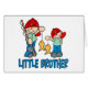 Dos lindos niños de la pesca usando gorjitos rojos y sosteniendo peces con texto que dice 'Hermano Pequeño'. Color del fondo del personalizable. Tiene un diseño de hermano mayor a juego.