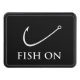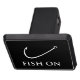 Los PESCADOS EN la cubierta del remolque de enganche con el gancho y las palabras PESCAN ENCENDIDO.