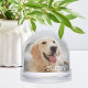 Showcase your favorite pet photo in this charming snow globe featuring their name in clean white block lettering overlaid at the bottom of the image. The back displays a second photo or watercolor portrait for a two-sided personalized keepsake. A wonderful birthday gift for dog moms, cat dads, or anyone who adores their furry best friend. All text and photos are fully customizable.