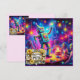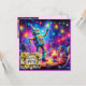 La tarjeta representa a un robot sucio que entretiene a niños. Cuenta con un robot, un pastel y luces fluorescentes brillantes. La parte trasera tiene una pequeña versión de la imagen delantera y mucho espacio para escribir un mensaje. AI Bing ayudó en la creación de la tarjeta.