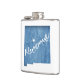 El Nuevo México de Albuquerque es un paraíso para los excursionistas y ciclistas con diferentes niveles de senderos a lo largo de las montañas de Sandia y Manzano, para practicar senderismo y ciclismo de montaña en Nuevo México. Este hermoso diseño es un mapa de Nuevo México con grano de madera azul y texto cursivo.