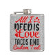 Petaca Amor Tacos y Texto personalizado Todo lo que Neces
