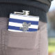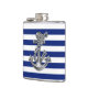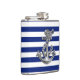 Un estilo moderno de plata náutica como el de las aplicaciones en una decoración de rayas azul marino para un buen regalo personalizado.