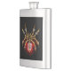 Araña mecánica, de vapor punk con oro, engranajes de latón y una lámpara de vidrio roja sobre un fondo negro. Estilo Steampunk.