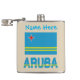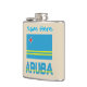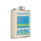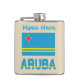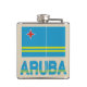 Hip Flask muestra la bandera de Aruba con las palabras ARUBA bajo la bandera que coincide! Arriba, un lugar para su nombre para personalización o para crear un aspecto especial y personalizado. Una forma divertida de recordar un viaje, unas vacaciones o unas vacaciones en Aruba. La bandera es azul, roja y amarilla. Útil en una reunión familiar, grupo de viajes o club. Un regalo muy apreciado por el Día del Padre.