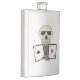 Un jugador de póker de esqueleto vestido con inteligencia y confianza sostiene un par de razas en este diseño de póker genial.