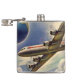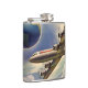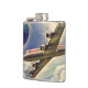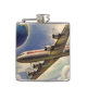 Viaje de ilustracion y diseño de transporte con un Douglas DC-7, de cuatro motores, comercial, de hélice. Nubes blancas onduladas en el cielo por encima de la tierra.