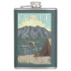 El avión y la pesca - Parque Nacional Glacier, TA de Bush - poster del viaje del vintage fueron creados en 2007. Esta imagen representa las escenas del Parque Nacional Glacier, TA