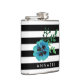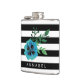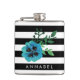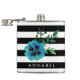 ¡tote tu libación favorita con estilo! El Flask incluye rayas blancas y negras de moda y una flor de color azul marrón de color azul. Personalizar con un monograma, nombre o texto de su elección! Un gran regalo para las damas de honor.