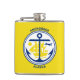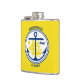 Matraz envuelto de vinilo con la ciudad de Anchorage, Alaska; bandera amarilla con sello blanco con ilustracion de barco y ancla azul