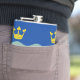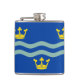 Matraz envuelto de vinilo con diseño con una bandera del condado histórico de Cambridgeshire, en Inglaterra, Gran Bretaña; bandera azul con tres coronas doradas y dos olas