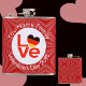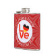 El matraz de cadera personalizado con la bandera alemana o alemana LOVE tiene una bandera alemana en forma de corazón para el O. Un círculo fractal de cuadrados blancos de calamares sostiene el amor, con un fondo rojo de los mismos cuadrados grisáceos fractales. El matraz de cadera le hace un encantador regalo El día de San Valentín. Puede cambiar el texto para que se ajuste a cualquier ocasión.