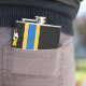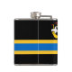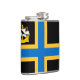 Matraz envuelto en vinílico con diseño con bandera del histórico condado de Caithness, en Escocia, Gran Bretaña; bandera negra con cruz nórdica azul y amarilla y ilustracion de un barco con cuervo en su vela en la parte superior