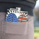 La bandera estadounidense con luces de neón envuelta en un corazón. Celebren América con este audaz y rústico diseño de emblema. Patriótico, divertido, genial.