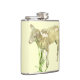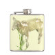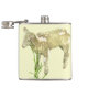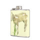 Este matraz muestra un cordero dulce de apenas tres semanas de edad. Está masticando hierba con un fondo amarillo.