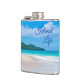 Perfecto para aquellos con sueños de vivir la vida de la playa en una isla. Una hermosa foto tropical de playa con agua turquesa y las palabras "Island Life" en escritura cursiva sobre el cielo azul.