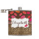 Punto femenino de la impresión de la piel del leopardo con besos de los labios en diversas sombras de rojo, de rosado, de púrpura, de anaranjado y de amarillo con un fondo del cuero marrón oscuro. Aliste para personalizar y para añadir cualquier nombre. Apenas cambie a Elizabeth a su nombre. Completamente adaptable. Moda de Très y elegante.