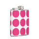 El Big Polka Dots Flask, muy agradable y de moda. Este diseño presenta grandes puntos de polka circular en rosa y blanco. Se puede añadir texto a este diseño para darle un toque personal.