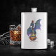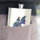 Un pequeño dragón azul con las alas púrpura, verde y azul se enrolla en torno a una guitarra de arrebato de sol de rojo, naranja y amarillo, con la cola y el cuello envueltos suavemente alrededor de la base y el cuello de la guitarra. Una mezcla mágica de música y fantasía perfecta para los amantes de la música y los aficionados a la fantasía.