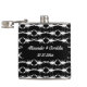 Este impresionante matraz de cadera Boda presenta una imagen de arte digital de un par de hermosos escorpiones blancos que se enfrentan entre sí. Cada escorpión es blanco y tiene ocho patas, una picadura venenosa y un par de pinzas. Las pinzas se mantienen juntas para formar la forma de un corazón. El fondo es negro. Un hermoso diseño de Boda gótico. Hay un texto personalizado para que puedas incluir los nombres de la pareja feliz y la fecha Boda.
