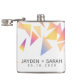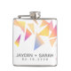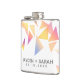 Conmemore su día especial con este matraz boda, que presenta un juego de confeti triangular multicolor sobre un fondo blanco. Añade los nombres de los recién casados y la fecha de boda. ¡Es un gran favor para los clientes! Diseño © W.H. Sim. Ver más en zazzle.com/expressionsoccasions