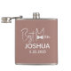 El mejor regalo del hombre del Boda personalizado que se puede personalizar con el nombre del mejor hombre y la fecha del boda. El matraz de tono de tierra marrón tiene un diseño de escritura elegante y moderno con un gráfico de corbata de arco. Un gran regalo para el novio para darle a su mejor hombre.