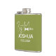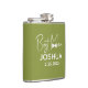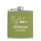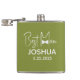 El mejor regalo del hombre del Boda personalizado que se puede personalizar con el nombre del mejor hombre y la fecha del boda. El matraz verde tiene un diseño de escritura elegante y moderno con un gráfico de corbata de arco. Un gran regalo para el novio para darle a su mejor hombre.