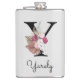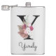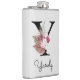 Frasco inicial rosa boho monogramado, regalo perfecto para una despedida de soltera u otra divertida celebración de chicas. Personalizado con la letra Y monogramada y un nombre.