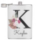 Petaca Boho floral rosa monogramado inicial K