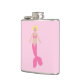 Este impresionante matraz de cadera presenta una imagen de arte digital de una sirena rosa bonito. Ella tiene el pelo rubio y los ojos azules y un caparazón rosado. Su cola es rosa y está cubierta de una balanza en forma de diamante rosa bonito. Lleva un collar con forma de corazón dorado y un anillo de oro en los dedos. Sus uñas son rosas y ella tiene un lápiz de labios rosado. También lleva un hermoso arco rosado en el pelo.