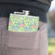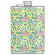Un matraz de cadera envuelto en vinilo muy bonito, con un patrón de primrosis rosa profundo, azul profundo y amarillo, de un diseño acuarela pintado a mano por Judy Adamson. Este patrón, que forma parte de la colección "Primroses" de Posh & Painterly, se puede ajustar para que se ajuste a cualquier matraz de cadera.
