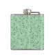 Un matraz de cadera de bonito, con un patrón de Shamrock verde oscuro delineado en blanco, sobre un fondo verde claro. Este patrón, que forma parte de la colección "Shamrock" de Posh & Painterly, se puede ajustar para que se ajuste a cualquier matraz.
