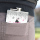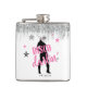 Inicia la fiesta con esta divertida petaca "Disco Darlin'", para toda la equipo de la novia, en plateado brillante y rosa. Una silueta de vaquera con sombrero plateado brillante y tipografía llamativa "Disco Darlin'", está acentuada por estrellas y un borde de flecos plateados. Agrega la fecha de tu evento utilizando la plantilla proporcionada. Busca ID925 para ver otros productos de la colección de moda.