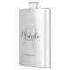 Añada un toque personal a su boda con el matraz personalizado de la dama de honor. Este matraz presenta el nombre personalizado de la dama de honor en el estilo de fuente de escritura moderno gris y monograma en el estilo de fuente de escritura moderno gris claro como fondo con título y fecha boda en el estilo de fuente sans serif moderno gris. También perfecto para la criada de honor, madre de la novia y más.