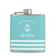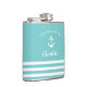 ¡Sip, sip, hurra! Celebra tus damas de honor con estos adorables frascos con temática náutica que se pueden personalizar con el nombre de cada dama de honor. El llamativo diseño azul turquesa y blanco presenta un ilustracion de ancla de un barco con "bridesmate" curvado sobre la parte superior y el nombre de la dama de honor debajo de la escritura moderna de escritura de pincel. Tres franjas náuticas en la parte inferior completan el diseño.