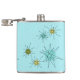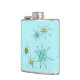 Este patrón de brotes atómicos iónicos del huevo azul de Robin de Vinyl Wrapped Flask presenta estallidos atómicos icónicos. ¡Así es! La vieja escuela, el fondo de color azul óvulo de robin con especkles de oro, es el telón de fondo perfecto para los vibrantes círculos turquesa, apasionante apio y kitschy color verde pera. Las manchas de color se colocan esporádicamente en varios tamaños, con líneas en forma de V negra superpuestas que forman las estallidas modas del sputnik. Diseñado siguiendo un patrón de platos de la década de 1950, este diseño de inspiración retro tiene todo lo necesario para ser realmente moderno a mediados de siglo.