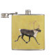 Un caribú toro, o reno, superpuesto sobre un fondo de cuero curtido en el cerebro. El caribú (Rangifer tarandus), conocido como el reno fuera de América del Norte, es un ciervo del Ártico y el subártico. Si bien en general se han extendido y son numerosas, algunas subespecies son raras y una se ha extinguido. La palabra inuit tuktu significa - ciervo que nunca deja de moverse. Los caribúes siempre están en movimiento, yendo al norte a la cala, dirigiéndose a los jardines de invierno, y al sur en verano. El caribú tiene un color y un tamaño considerables. Únicamente entre los ciervos, ambos géneros cultivan cánceres, aunque son mayores en los machos y hay algunas poblaciones donde las hembras no las tienen por completo. La caza y el pastoreo de los caribúes de renos semidomesticados (carne, pieles, corderos, leche y transporte) son importantes para varios pueblos del Ártico y del submarino. Incluso lejos de su alcance, el caribú/reno es bien conocido debido al mito, probablemente originado a principios del siglo XIX en América, donde el trineo de Santa Claus es arrastrado por renos voladores, un popular elemento secular de Navidades. En la Laponia real, los renos tiraban de una pasta. Distribución y hábitat El caribú/reno es una especie extendida y numerosa en el Holártico septentrional, presente tanto en tundra como en taiga (bosque boreal). Originalmente se encontró en Escandinavia, Europa oriental, Rusia, Mongolia y el norte de China al norte de la latitud 50. En América del Norte, se encontró en Canadá, Alaska (EE.UU.) y en el norte de los EE.UU. de Washington a Maine. En el siglo XIX, aparentemente seguía presente en el sur de Idaho. También ocurrió de manera natural en Sajalín, Groenlandia y probablemente incluso en tiempos históricos en Irlanda. A finales de la era del Pleistoceno, los renos se encontraban tan al sur como Nevada y Tennessee en América del Norte y España en Europa. Hoy en día, las especies han desaparecido de muchas áreas dentro de este amplio rango histórico, especialmente de las partes del sur, donde se desvaneció casi por todas partes. Todavía hay grandes poblaciones en Noruega, la región de Markku de Finlandia, Suecia, Siberia, Groenlandia, Alaska y Canadá. Los renos domesticados se encuentran mayormente en el norte de Fennoscandia y Rusia, con un rebaño de aproximadamente 150-170 renos viviendo alrededor de la región de Cairngorms en Escocia. Los últimos renos de tundra salvajes que quedan en Europa se encuentran en partes del sur de Noruega. A principios del siglo XX se introdujeron algunos renos de Noruega en la isla del Atlántico Sur de Georgia del Sur. Hoy, hay dos rebaños distintos que todavía prosperan allí, separados permanentemente por los glaciares. Sus números totales no superan los pocos miles. La bandera y el escudo de armas del territorio contienen una imagen de reno. Se han introducido alrededor de 4.000 renos en el archipiélago subantártico francés de las islas Kerguelen. El este de Islandia tiene una pequeña manada de unos 2500-3000 animales. El número de caribúes y renos ha fluctuado históricamente, pero muchos rebaños están en declive a lo largo de su gama. Este declive mundial está vinculado al cambio climático para el norte, los caribúes migratorios y los rebaños de renos y la perturbación industrial del hábitat de los caribúes para los rebaños sedentarios y no migratorios. El color de los Pieles de Piel varía considerablemente, tanto de forma individual como en función de la estación y de las subespecies. Las poblaciones septentrionales, que suelen ser relativamente pequeñas, son más blancas, mientras que las del sur, que suelen ser relativamente grandes, son más oscuras. Esto se puede ver bien en América del Norte, donde la subespecie más septentrional, el caribú de los Pares, es la subespecie más blanca y pequeña del continente, mientras que la subespecie más meridional, el caribú de los bosques, es la más oscura y grande. El abrigo tiene dos capas de piel, un abrigo grueso de lana y un abrigo de pelo más largo compuesto de pelos huecos y llenos de aire. Antlers Los renos crecen de nuevo cada año bajo una capa de piel llamada terciopelo. En la mayoría de las poblaciones, ambos sexos cultivan ángulos, que (en la variedad escandinava) caen en diciembre para los hombres de edad avanzada, para los hombres jóvenes en la primavera temprana y para las mujeres en verano. Los cantantes suelen tener dos grupos separados de puntos, uno inferior y otro superior. Los renos domesticados son más cortos y pesados que sus homólogos salvajes. Hay una considerable variación subespecífica en el tamaño de las gargantas (por ejemplo, más bien pequeñas y espinosas en las subespecies más septentrionales), pero en algunas subespecies, las gargantas de los renos toros son las segundas mayores de cualquier venado existente, después del alce, y pueden alcanzar hasta 39 pulgadas (100 cm) de ancho y 53 pulgadas (135 cm) longitud del haz. Tienen las mayores reglas en relación con el tamaño del cuerpo entre ciervos. El tamaño de Antler juega un papel importante en el establecimiento de la jerarquía de grupos. Nariz y pezuñas Los renos tienen narices especializadas con huesos de turbinato nasal que aumentan dramáticamente la superficie dentro de las fosas nasales. El calor corporal del animal calienta el aire frío entrante antes de entrar en los pulmones, y el agua se condensa desde el aire espirado y se captura antes de exhalar el aliento del ciervo, se utiliza para humedecer el aire entrante y posiblemente se absorbe en la sangre a través de las membranas mucosas. Las pezuñas de reno se adaptan a la temporada: en verano, cuando la tundra es suave y húmeda, las pastillas se convierten en esponjas y aportan tracción extra. En invierno, las almohadillas se encogen y aprietan, exponiendo el borde de la pezuña, que se corta en el hielo y la nieve costrada para evitar que 