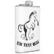 La yegua se está levantando, el diseño de esténcil se hizo con un programa vectorial. En la base de la pezuña hay rizos de polvo.
