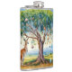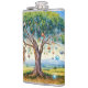 Un canguro Navidad sentado bajo un árbol de goma decorado con baubles y oropel.