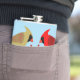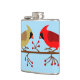 Este asombroso frasco de cadera de Navidades presenta un par de bonitos de Cardenales del Norte. El pájaro macho es rojo brillante con un escudo rojo en la cabeza y el pájaro hembra es de color amarillo parduzco con algo de rojo en las alas y la cola. Ambos pájaros tienen un pico rojo. Los pájaros están sobre una rama marrón cubierta de bayas rojas festivas, lo que hace de este un bonito diseño Navidad, especialmente para las parejas.
