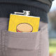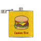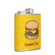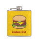 Ilustracion personalizado Cheeseburger. Iconos de contorno de comida basura fondo de patrón amarillo. Texto personalizado.