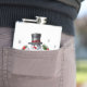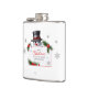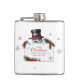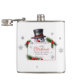 The design features a fcheerful snowman holding a sign with holiday greetings on a simple white background. This flask is guaranteed to bring happiness to anyone enjoying their favorite beverage during the winter months.