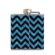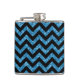 El Hip y el Purpurina de moda Chevron Look Flask. Este frágil matraz presenta un patrón de zag de chevron zig encima de un fondo purpurina azul de arte digital.